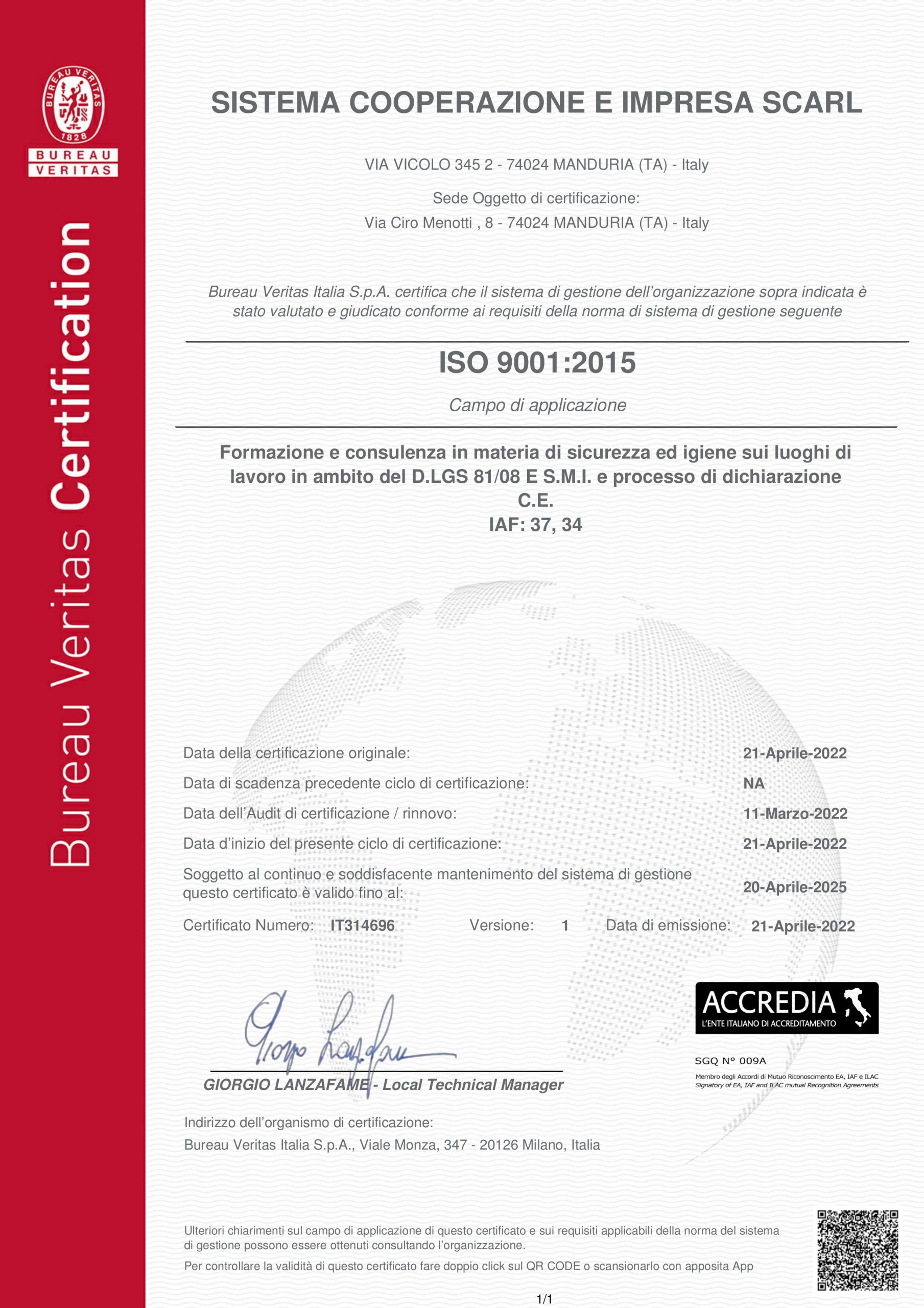 Meta Shift Consulting srl è una società che con ampie competenze professionali eroga servizi integrati nei settori della formazione, della ricerca e della consulenza. Ha ottenuto la certificazione ISO 9001:2015 (settore EA37) per l’ erogazione di attività formative, dimostrando di rispondere ai requisiti richiesti dalle norme internazionali. Il sistema di qualità ISO 9001 certifica il valore aggiunto dell’azienda, orientata sia al miglioramento dell’organizzazione aziendale che ad una sempre maggiore soddisfazione del cliente. Il mantenimento del Sistema di Gestione per la Qualità è garantito dagli audit annuali da parte dell’Ente Certificatore.